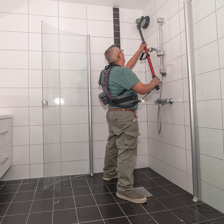 Vaske alle baderomsflisene og dusjen